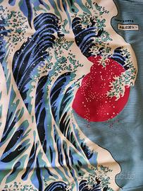 Canotta top a costine con stampa davanti dell'opera La grande onda di Kanagawa, colore azzurrino tipo carta da zucchero, molto bello e mi dispiace venderlo ma non l'ho mai usato per errata misura, io sono una 42 con giro busto di cm 73 e una seconda scarsa di seno,a me sta un po' grande, secondo me può andare bene per chi ha almeno una terza o una taglia 44, se servono le misure in cm chiedete pure, va considerato che il tessuto è morbido ed elastico.