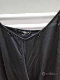 Top Liu.Jo con spalline in morbida viscosa elasticizzata lucida effetto raso, con apertura ad incrocio sul davanti, vestibilità morbida. color nero. TG. 40