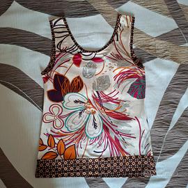 Meraviglioso top Marella in viscosa elasticizzata. Fantasia floreale con bordi e rifiniture a contrasto. Indossato una sola volta. Nessun difetto.