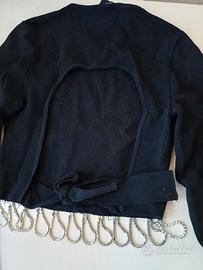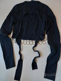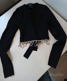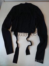 Questo capo è un crop top a maniche lunghe nero con dettagli in strass sul bordo inferiore della marca Bershka.