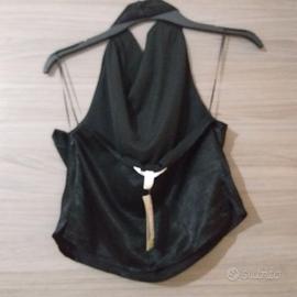 Nuovo con etichetta, Schiena scoperta. Taglia S/M. Mai usato. Lungo davanti cm 49 circa, dietro lungo cm 26,5 circa, largo da ascella ad ascella cm 46 circa mai indossato. Tessuto simile seta misto raso