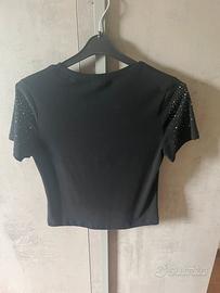 Bellissimo top corto nero con strass argentati. Perfetto per una serata speciale!