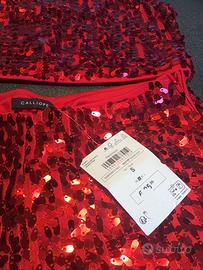 Completino top più short ,brand Calliope, colore rosso con paillettes,nuovo con cartellino.
