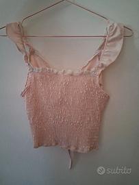 Top rosa chiaro arricciato, con laccio e spalline. Taglia S Prezzo: 5€