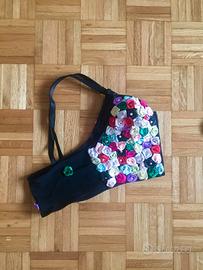 #Top realizzato ricamando delle #rosellini multicolor su di un #bustier nero. Si chiude sul davanti con il velcro è completamente foderato nel davanti e con il seno leggermente imbottito. Il dietro invece è realizzato con un tessuto elasticizzato e dispone di spalle e regolabili Taglia M.