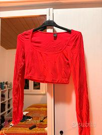 Top rosso crop SHEIN maniche lunghe – taglia XS
