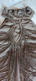 Top scollo all'americana in organza trasparente foderata con cerniera sul dietro e decorazione di fili di coralli neri sul davanti. Lunghezza alla vita. Taglia S. Ottime condizioni. Marca: Motivi
