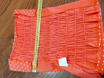 top senza spalline mis. s col. corallo a pois bianchi, coppe inserite e arricciato dietro per una buona vestibilità! Molto bello sia in versione elegante che sportiva con jeans!Nuovo senza cartellino, quindi mai indossato!!!