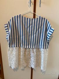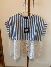 Vendo splendida maglia del brand Shiki ricevuta come regalo ma purtroppo di taglia errata (troppo piccola per me).Il capo è NUOVO, mai indossato, completo di cartellino originale che certifica il valore di 139,00 €. Maglia a righe blu e bianca con inserto di pizzo bianco. Taglia XS. Prezzo trattabile.