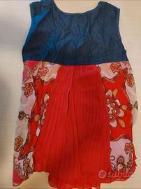 Top smanicato boho chic in rosso e denim.