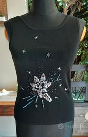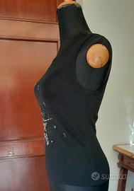 elegante top sottogiacca colore nero con paillettes colore argento taglia 42