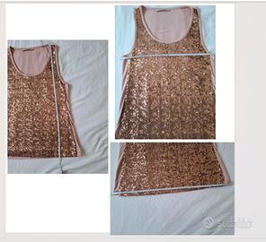 Bellissima canotta o sottogiacca Pennyblack rosa cenere, in jersey di viscosa, con fronte totalmente ricoperto di paillettes tono su tono.