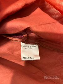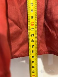 Top rosso mattone con spalline sottili e taglio svasato, super leggero e comodo. Ideale da abbinare a jeans o pantaloni eleganti per un look versatile. In cotone leggerissimo/chiffon a più strati, taglia 40. Perfetto per nascondere un po’ di pancia!