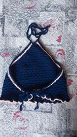 Topad uncinetto, color blu e rifiniture in rosa, taglia S , molto carino vendo a 5.00 euro