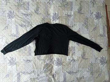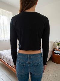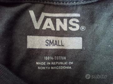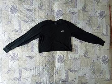 Vendo maglia crop nera a maniche lunghe Vans, taglia Small (vestibilità comoda, controlla le misure in foto). In 100% cotone morbido, presenta il piccolo logo Vans bianco sul petto e il fondo a taglio vivo (visibile nelle foto). Il codice prodotto è VN0A4OUQBLK1. Condizioni ottime, indossata pochissimo.