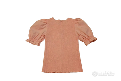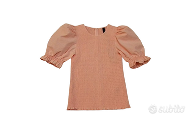 Delizioso top elasticizzato Yas color salmone, perfetto per aggiungere un tocco di freschezza al tuo guardaroba! Caratterizzato da maniche a sbuffo e corpino elasticizzato che si adatta perfettamente al corpo, offrendo comfort e stile. Nuovo con cartellino. 100% cotone. Taglia M.