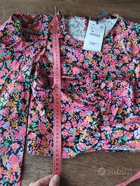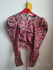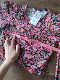 Bellissimo crop top firmato Zara, caratterizzato da una vivace stampa floreale multicolor su base scura. Il design è super attuale, con maniche lunghe a sbuffo che donano volume e un dettaglio arricciato (ruched) sul davanti che valorizza la silhouette. Brand: Zara Taglia: xs, S (vestibilità regolare) Condizioni: Nuovo con cartellino (mai indossato) Dettagli: Scollo tondo, lunghezza crop, tessuto leggermente elasticizzato. Perfetto da abbinare a un paio di jeans a vita alta o una gonna per un look romantico ma grintoso! CropTop FloralPrint Fiori Primavera
