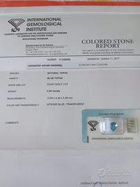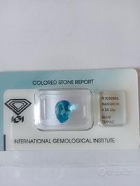 vendo topazio naturale trasparente in blister certificato con numero di serie di 3,55 carati forma goccia.