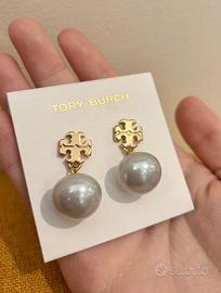Tory Burch Gold Logo Orecchini di perle di goccia
