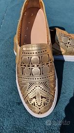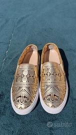 Sneakers slip on, in pelle traforata color oro taglia USA 9M (EU 40,5 / 41)
