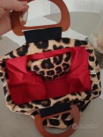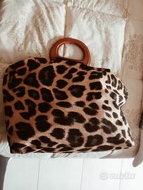 total bag realizzata con un meraviglioso tessuto maculato acquistato in uno dei miei viaggi a Doha..con interno in puro cotone rosso con tasca e con due splendidi manici in legno