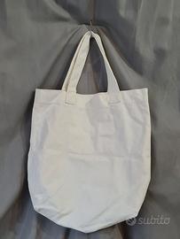 Tote bag / shopping bag del marchio Abercrombie & Fitch , nuova con cartellino, acquistata nel primo decennio del 2000. Bianca e scritta in blu navy (lettere a rilievo), taschina all'interno. Misure: larghezza 40cm, lunghezza 42cm, profondità 11cm, lunghezza manico 47cm. #canvasbag #borsaaspalla #borsaintela #borsaintessuto #abercrombieandfitch #abercrombie