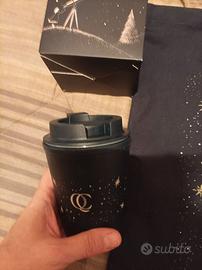 Borsa cotone e mug plastica blu . Volendo ho anche una crema scrub viso del brand termale. A Milano consegno