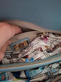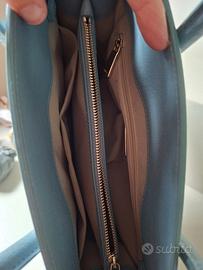 Originale,in pelle stampa saffiano,27x23x13cm,a mano,ha i ganci ma non la tracolla,capiente e ben organizzata al suo interno,3 scomparti,ottime condizioni