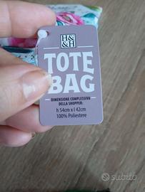 Tote bag nuova con stampa fantasia floreale e uccellini, marca H&H, in poliestere.