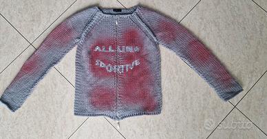 Bellissimo maglioncino in lana merinos Toy G., caldo e morbido con applicazioni in strass sul davanti, doppia cerniera di chiusura, colore di base grigio con fantasie rosate. Taglia s /m, praticamente mai indossato in condizioni perfette.