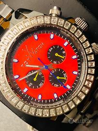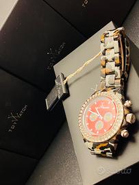 Resistente all'acqua: 5 ATM/50m, movimento: quarzo con 3 lancette, cronografo; quadrante: impresso; Lunetta graduata: acciaio con elementi Swarovski; Cinturino: Plasteramico impresso. Orologio unisex Toywatch Watch Imprint Chrono safari orologio Orologio uomo Orologio donna
