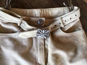 Pantaloni in pelle, marca St. Moritz,taglia 44, il bordo infondo si può togliere,ideale per OKTOBERFEST. Il pantalone è tutto foderato e ha anche un bel ricamo.Usato solo una volta.