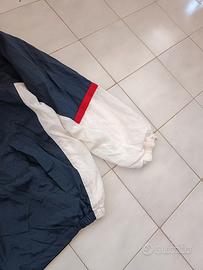 Track Jacket originale marca Ellesse taglia I-56 F/D-56 UK-44 misure da ascella ad ascella 73cm lunghezza 70cm colore principale blu scuro logo ricamato tasche polsi e vita elasticizzati interno foderato misto nylon poliestere cotone retro vintage ottime condizioni.Per ulteriori info e foto su questo articolo o su qualsiasi altro prodotto non esitate a scrivermi
