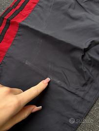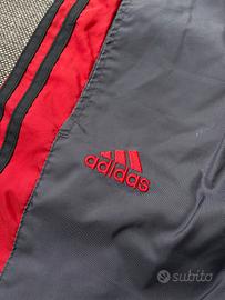 Vendo trackpants/pantaloni della tuta tecnici originali Adidas grigio scuro con dettagli e logo ricamato rossi.
