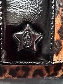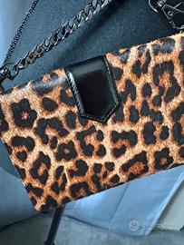 * Materiale: Cavallino stampato leopardato (esterno), pelle lucida nera (dettagli e interni), fodera in tessuto (interno).