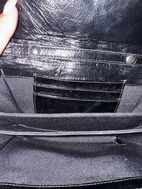 * Interni: L'interno è foderato in tessuto nero e organizzato con scomparti per carte di credito e una tasca interna, rendendola pratica e funzionale come un portafoglio. (Vedi foto per i dettagli interni).