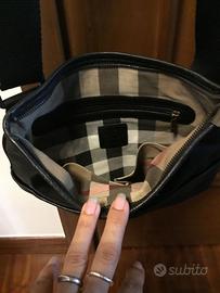 Bella tracolla Burberry in tela nera e profili in pelle.