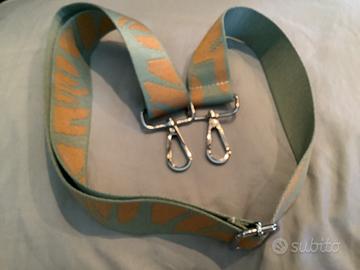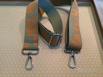 Per personalizzare una borsa anonima, per trasportare comodamente un borsone, offro questa tracolla in misto cotone brillante, molto bella, camouflage nei ogni del marrone tabacco e verde salvia.