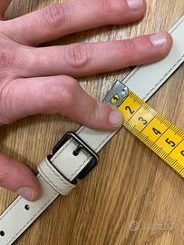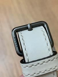 Tracolla originale Gucci per borsa, in pelle bianca, hardware argento brunito, condizione nuovo mai indossato, articolo esattamente come da foto, possibili micro-graffi da spostamento.