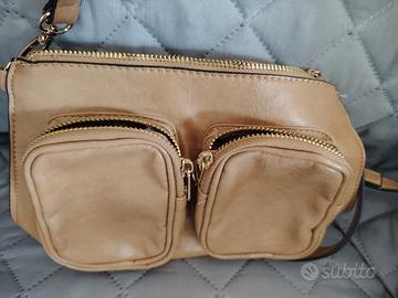 Borsetta a tracolla in pelle morbidissima, color senape, tre tasche con 3 zip, bellissima. Possibile la spedizione. Prezzo interessante.