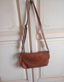 Tracolla donna vintage marrone bruciata in pelle con intreccio in cuoio ben conservata come nuova.
