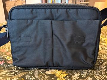 Vendo Tracolla Messenger Piquadro in tessuto colore grigio/blu scuro in perfette condizioni con due tasche porta oggetti e porta Tablet/Ipad fino a 10".