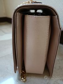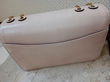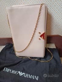 tracolla in pelle Emporio Armani rosa cipria. manici a catena dorata che si allungano a formare la tracolla. usata ma in ottimo stato, solo leggera scoloritura della chiusura dorata come da foto. Misura circa 25 cm di larghezza e circa 16 cm di altezza