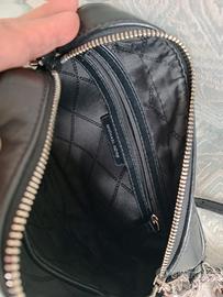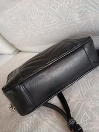 tracolla M Kors originale, in morbidissima nappa nera, trapuntata , in buone condizioni tranne in un angolo come si vede dalla foto, interno perfetto, nappina decorativa. misure : larga 21 cm, alta 16 , profonda 6 cm