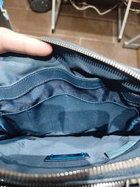 Tracolla Piquadro in pelle blu in buono stato, con due tasche principali.