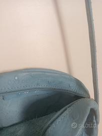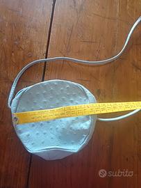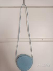 Piccola tracolla tonda Lanvin celeste in pelle di struzzo. Cm.13. Mai usata.