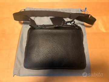 Vendo tracolla Piquadro in pelle martellata nuova con cartellino. Colore nero, dimensioni cm 27x9x22h. La borsa ha una tasca principale, una tasca anteriore ed una tasca posteriore con cerniere, ed un’ulteriore tasca anteriore con chiusura magnetica. Internamente è interamente foderata e all’interno, la tasca principale contiene due ulteriori tasche in tessuto con porta penne, porta cellulare ecc.