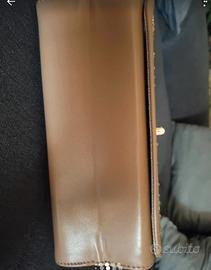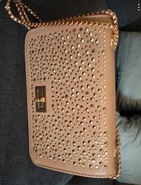 Borsetta Zuiki che può essere indossata a spalla o tracolla con borchie oro e colore beige - tortora.