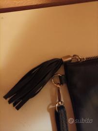 Tracollina made in Italy in pelle pregiata nera (vitello),con tracolla regolabile e cinturino da polso ,con