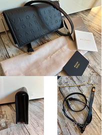 Tracollina Infinity Chain Bvlgari è un'elegante borsa in pelle nera logata a fuoco.